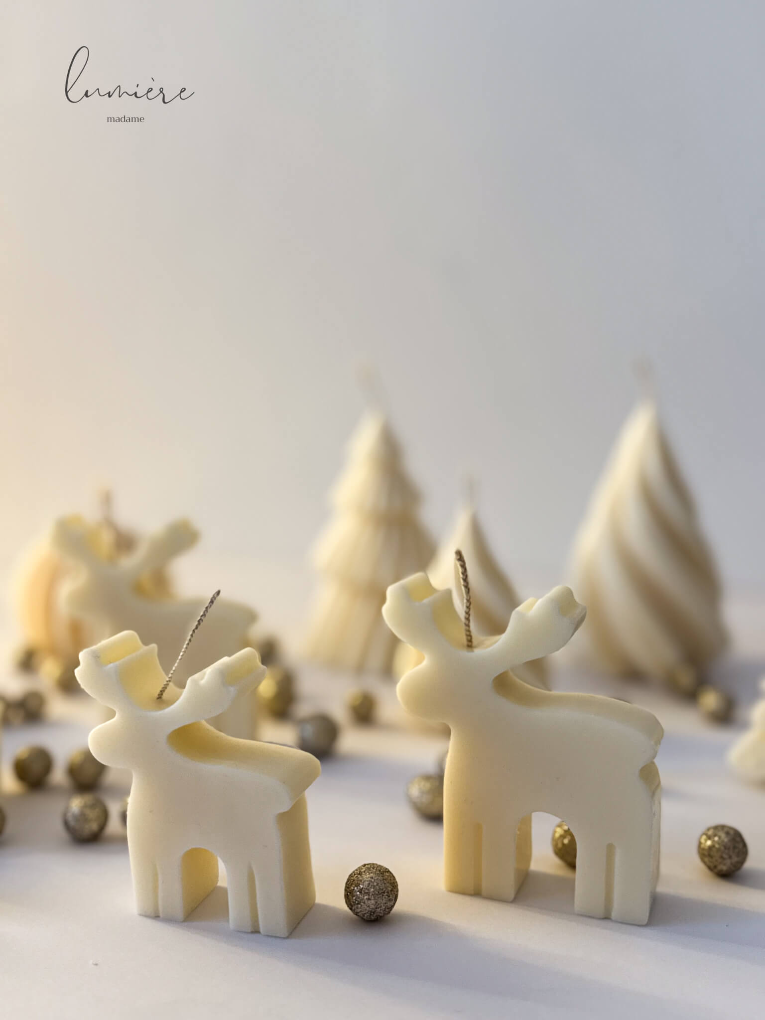 Lumânare decorativă în formă de ren, turnată manual din ceară de soia 100% naturală. Un accent elegant pentru decorul de Crăciun, perfectă pentru cadouri, aranjamente festive și ambianță caldă în orice spațiu.